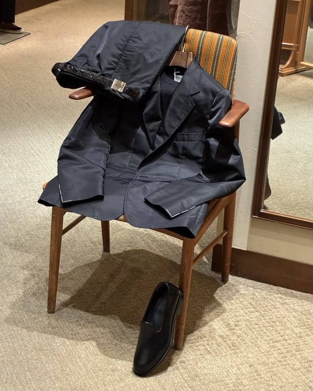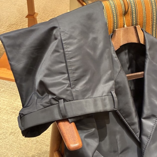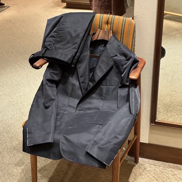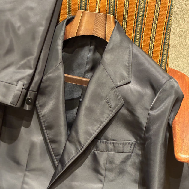 というのもVincenzo Attolini氏がが、80年代後半から90年代にあるメゾンブランドのスーツを監修していたのですが当時に近いナイロン生地でリバイバルさせたモデルです。