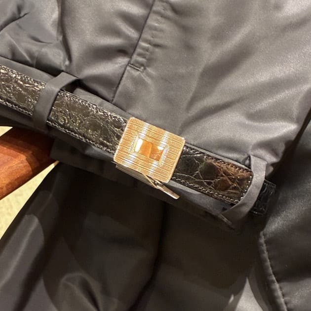 腰元にはSanta Trinitaよりクロコダイル×ディアスキン リバーシブルベルト。