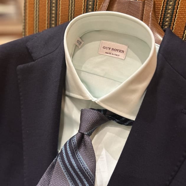 ラグジュアリー感のあるブレザーなので、カラーシャツを添えてBrilla per il gustoらしいシャレ感をイメージしました。