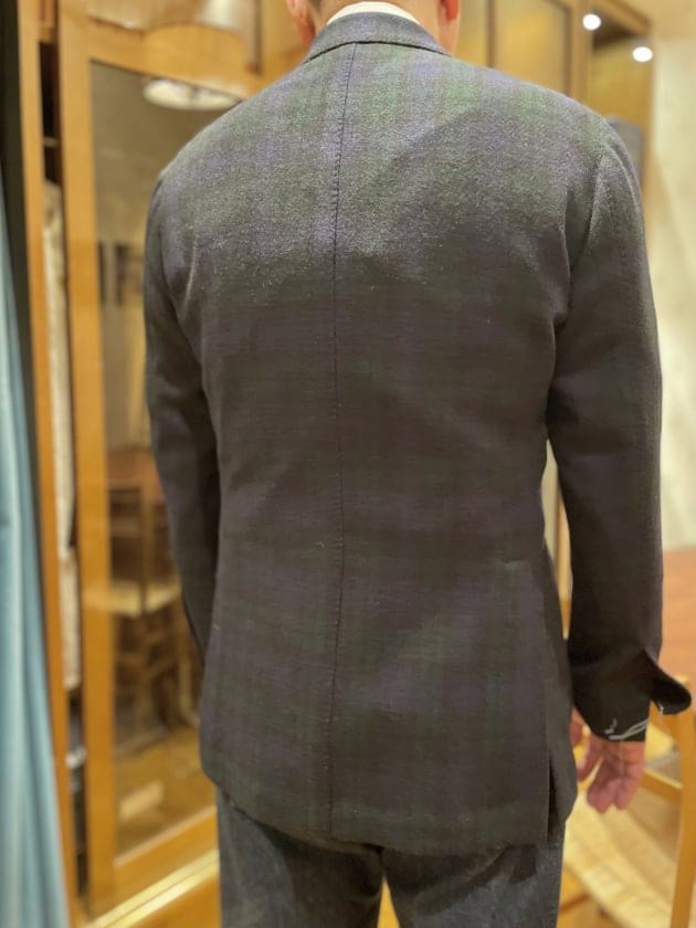 「立体的で丸みのあるオーバーバストはナポリならではの仕立ての良さを感じられます。