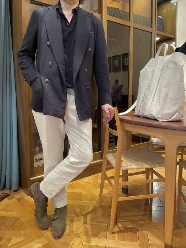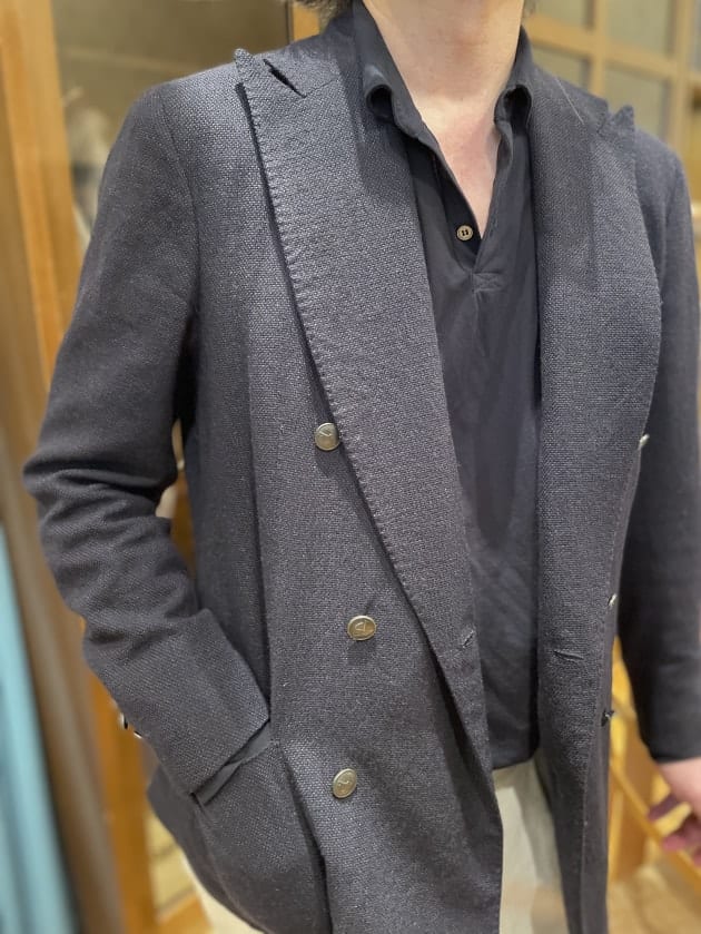 15年ぐらい前でしょうか?の〈Stile Latino(スティレ ラティーノ)〉のメタルボタンジャケットに、〈ZANONE(ザノーネ)〉のロングスリーブポロ。画像ではわからないですが、袖口がカフになっている素敵なポロ。というわたしも2色所有しています。
