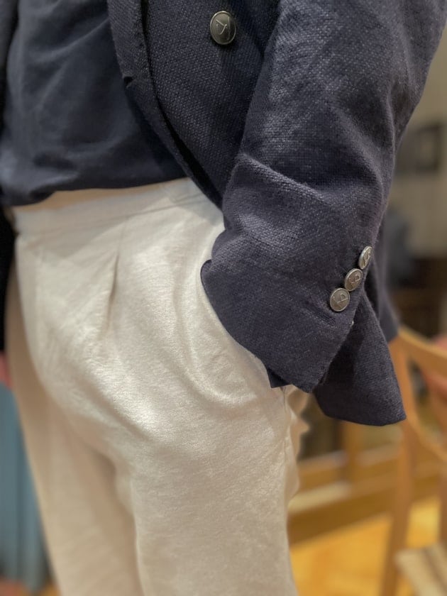 パンツも昔のらしいですが、オフホワイトのリネン素材。