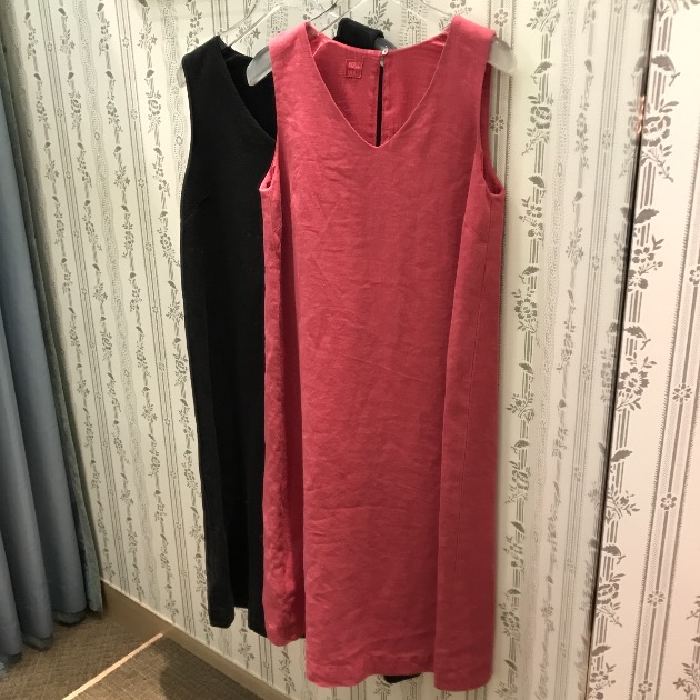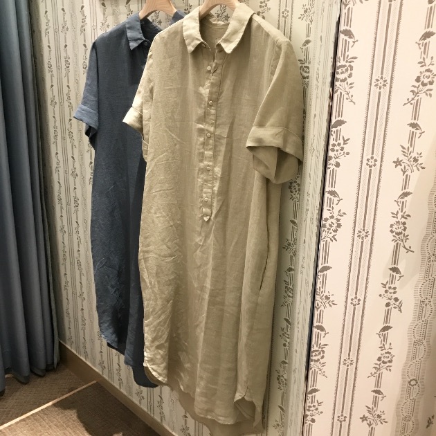 夏の定番でもあるリネン素材の商品は、毎年出ておりますが、このワンピースはオープンカラーで今っぽく着こなせると思います!