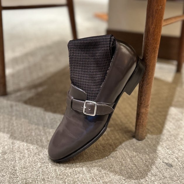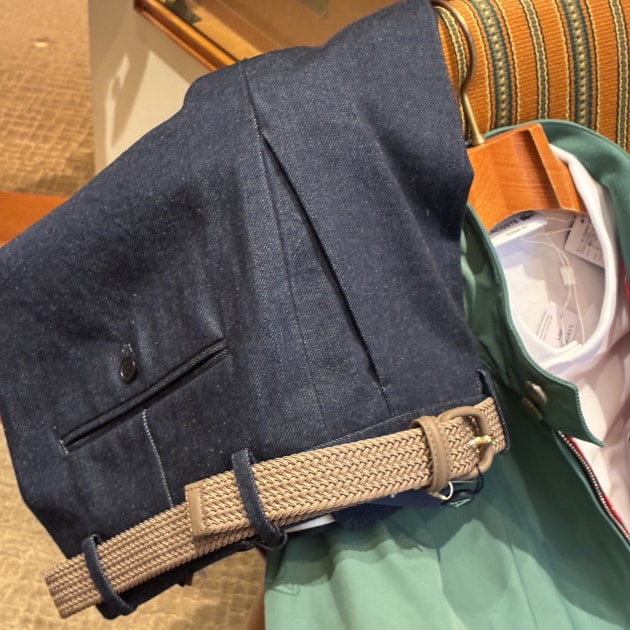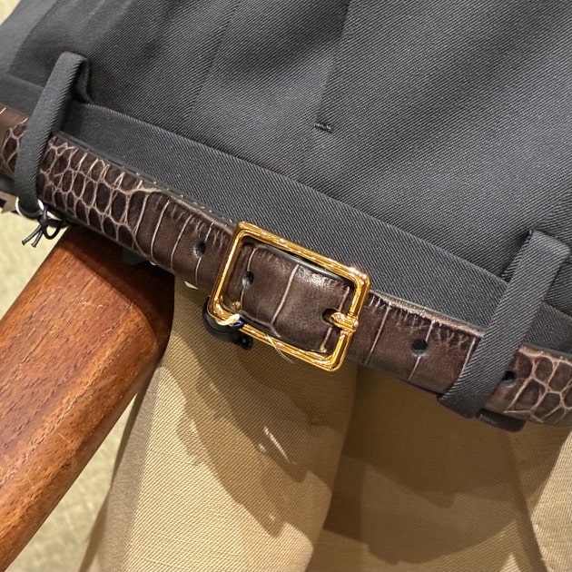 本来ベルトとシューズの色は合わせるのがセオリーですが、今回のような合わせかたならアリかと思います。