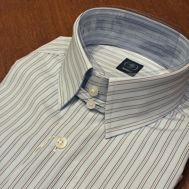 アトリエライン コットン ストライプ フレンチカラーシャツ