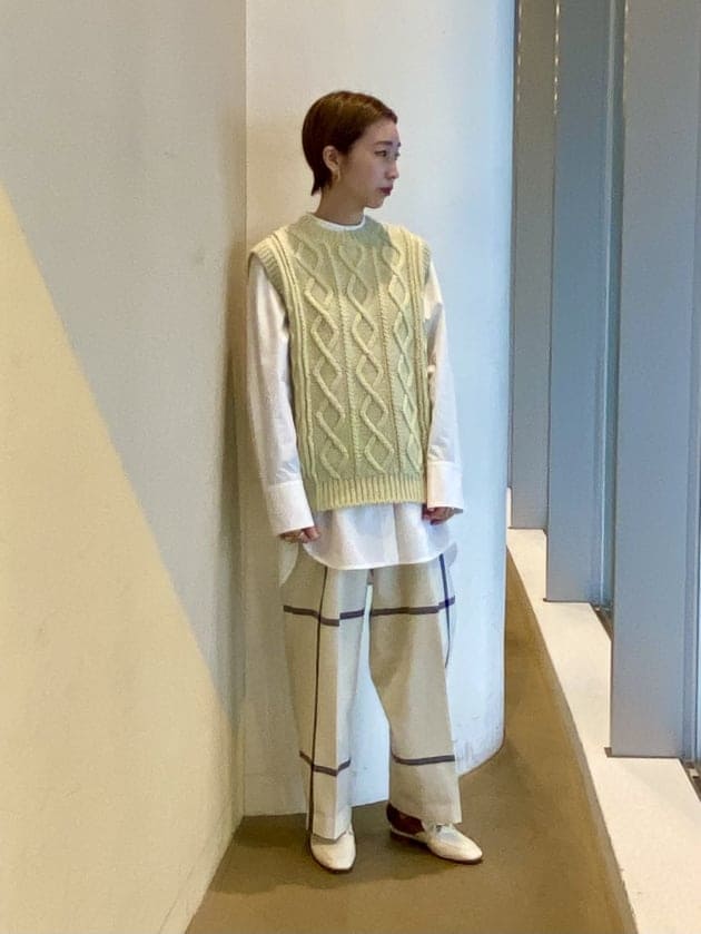 まずは 色や柄の組み合わせが素敵で様々なスタイリングを得意とする スタッフ 梶谷