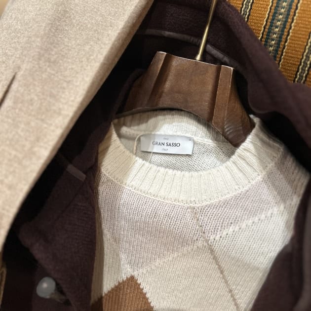 インナーにはGRAN SASSOのウールアーガイルニット。