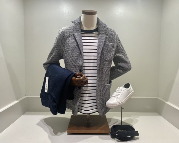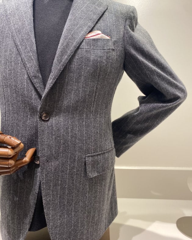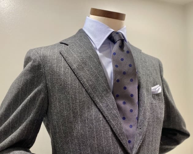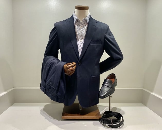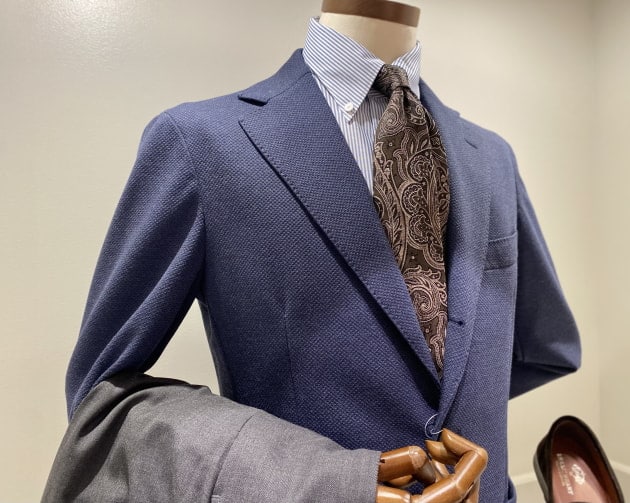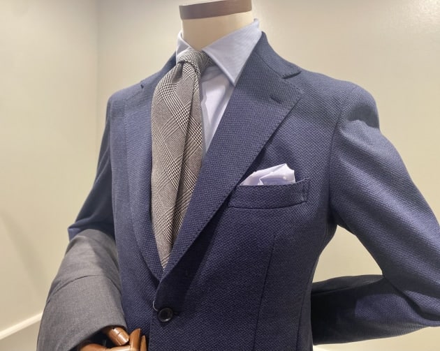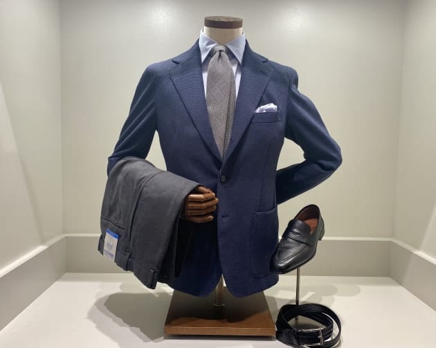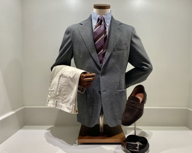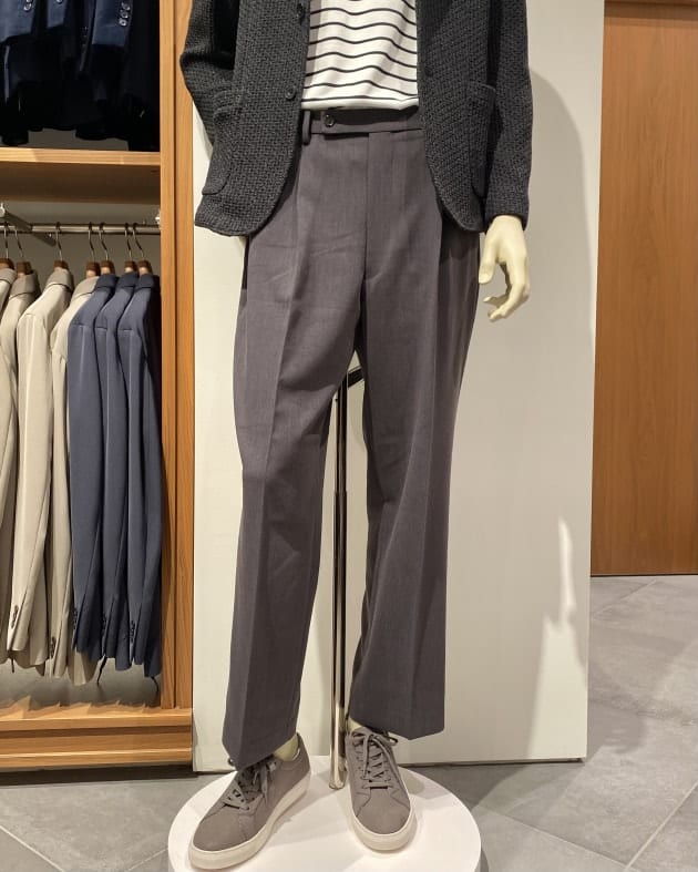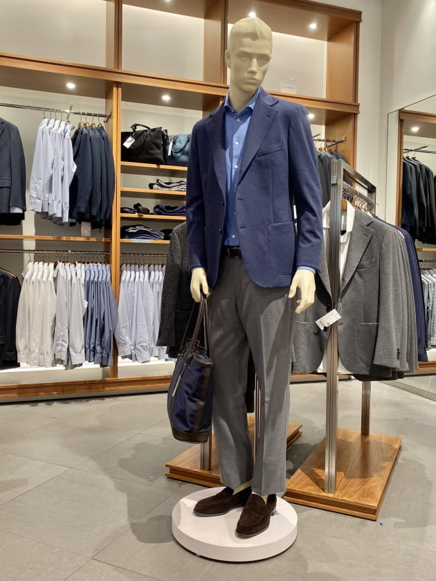 ブルーのジャケットもグレーのスラックスとは相性がいいので、こちらも合わせとしては間違いなしです。