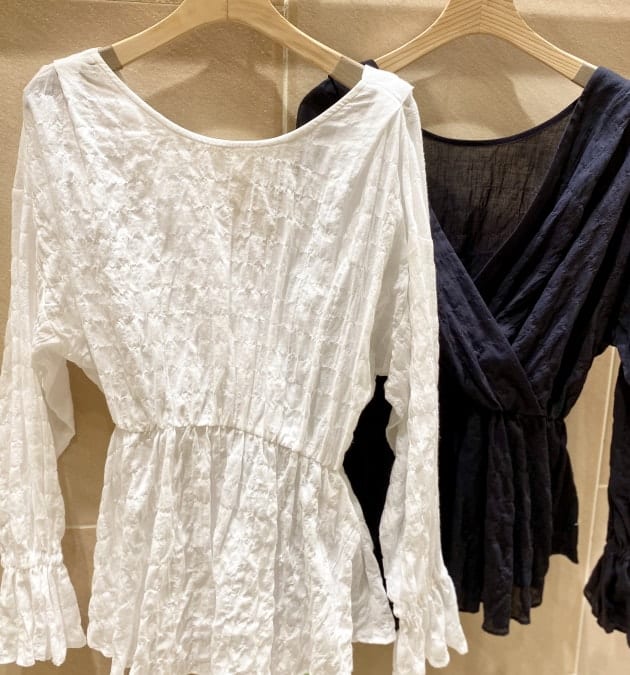 袖のボリュームスリーブもエレガントに、また華奢に見せてくれる嬉しいブラウス。