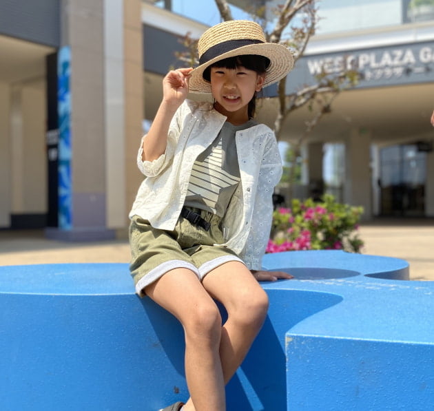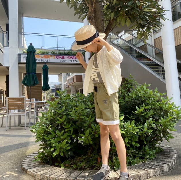 ロングTシャツですが、色も相まって涼しげです!