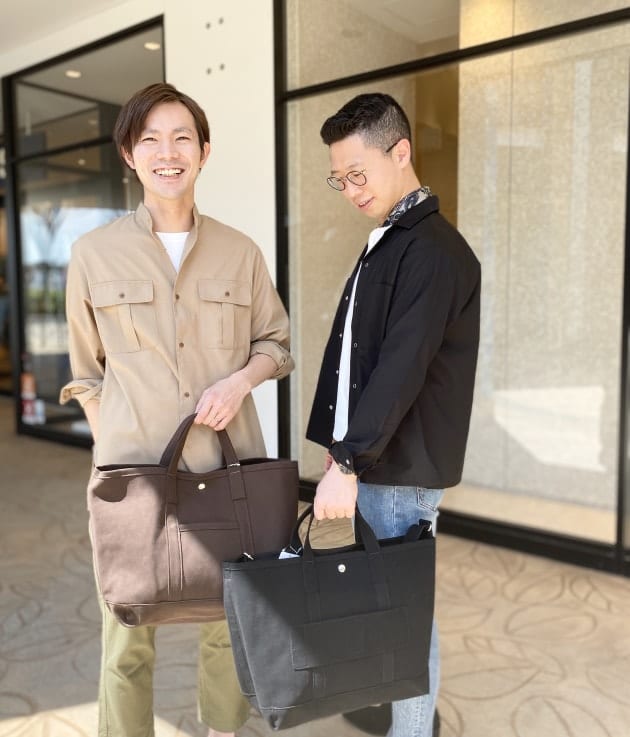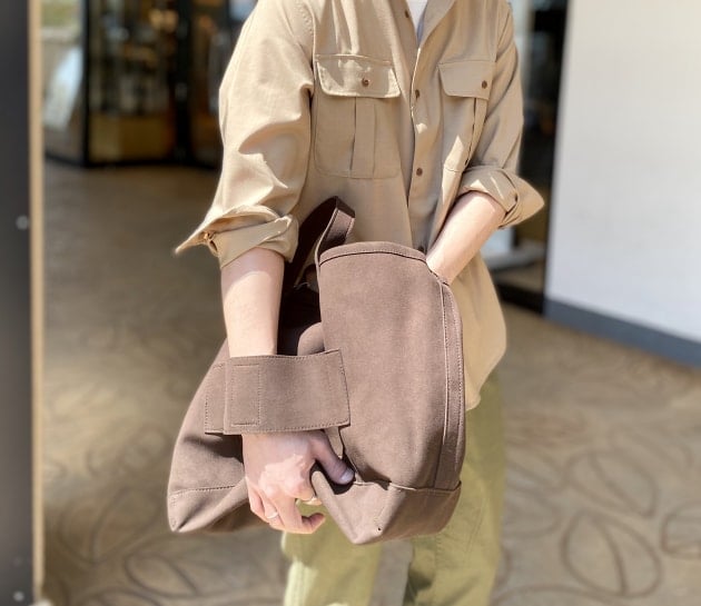 こちらも同じデザインのトートバッグに付けてみました。