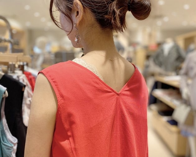 ヘアスタイルがボブにこの背中の開き具合が女性らしくていいですね。