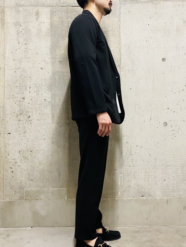 しっかりとしたスーツスタイルでありながらデニム生地で遊び心もあり大人の雰囲気全開です!