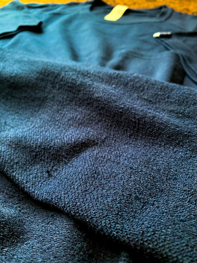 通常のスウェットの生地は3本の糸で構成されておりますが、裏毛の糸をLOOPWHEELERミドルで使用した7番手からさらに細い16番手の糸を使用することでとても軽くなっています!