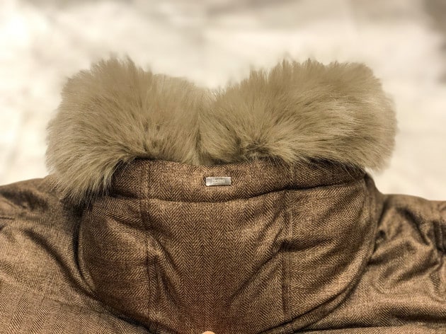 フード一体型のダウンコート。