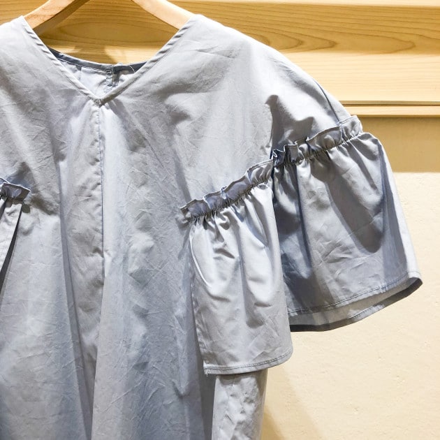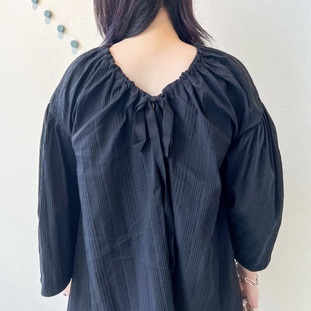 ネック部分がリボンになっていて、襟ぐりも調節可能です。