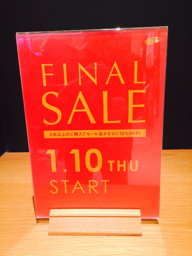毎年恒例となりましたファイナルセールが1月10日(木)からスタート致します。