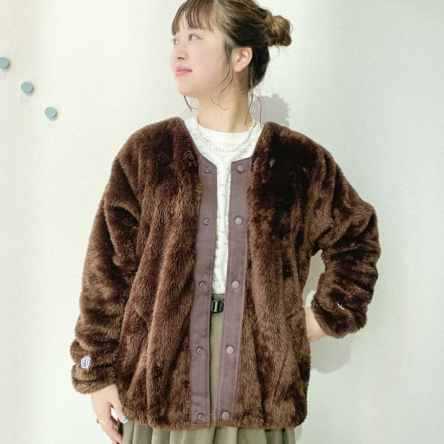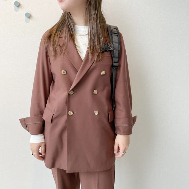 タイト目なシルエットなのでインナーを薄手にしてボタンを閉じて着るのも凄く可愛いです♡