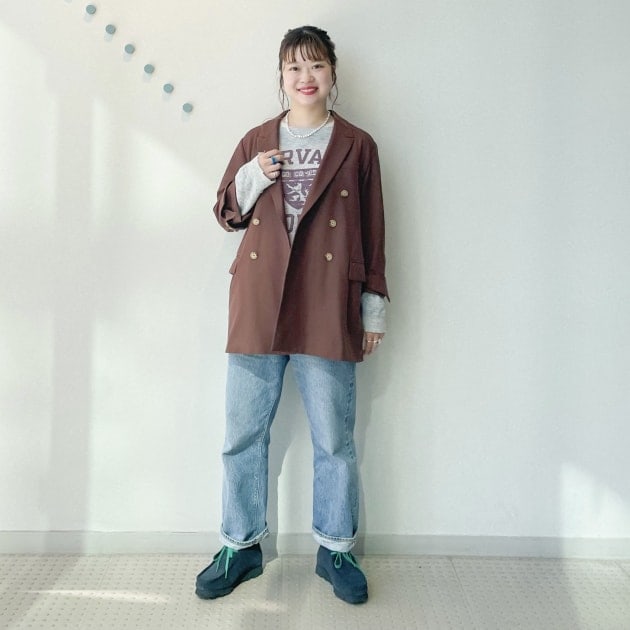 とても軽い生地感なので、春先はロンTやブラウスの上にサラッと羽織っていただけます!