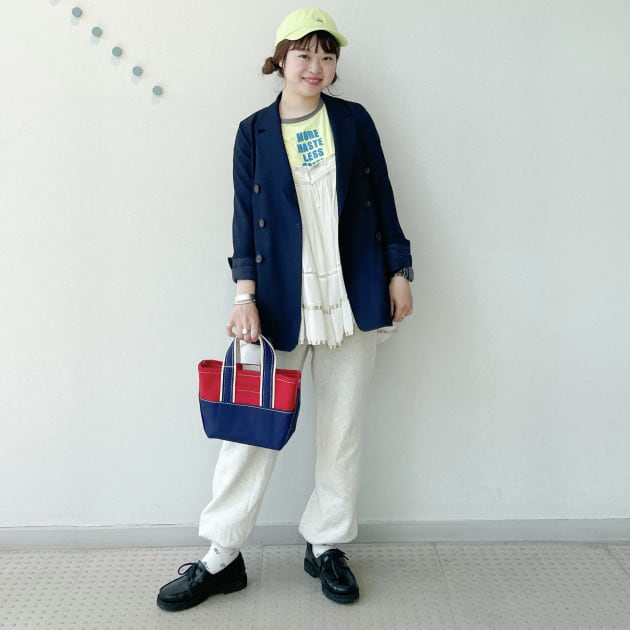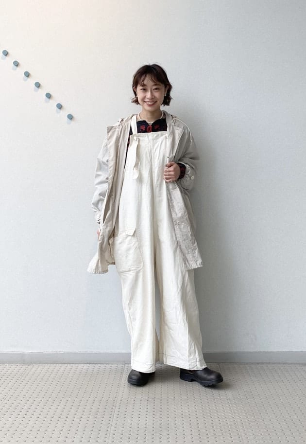 インナーや小物次第で雰囲気を変えれるのもオーバーオールの魅力ですよね。