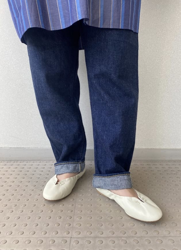 裾は結構長いので、太めにロールアップして履くのもボーイッシュで素敵ですし、自分サイズに裾直しをして履いて頂くのもより愛着が湧くのでお勧めです♪