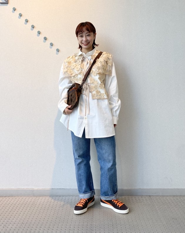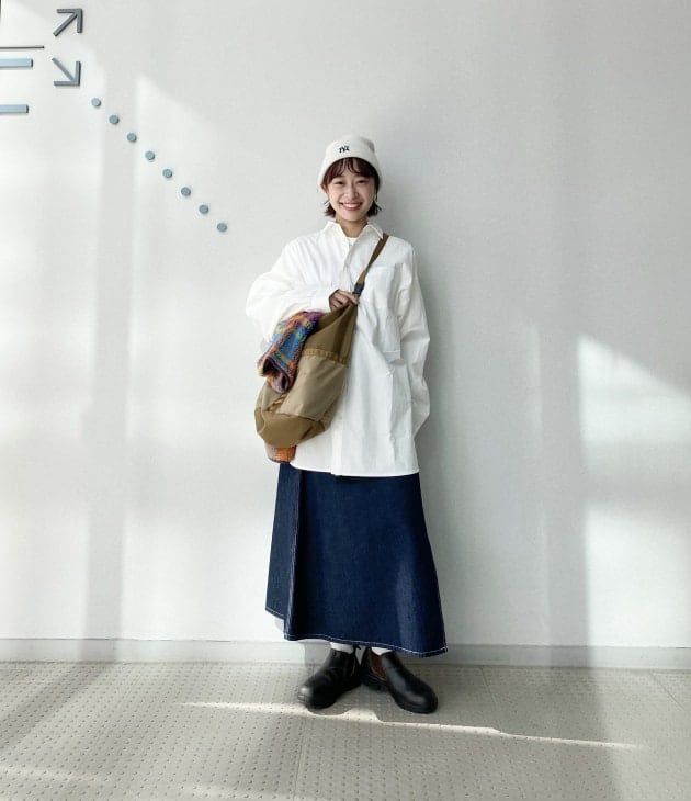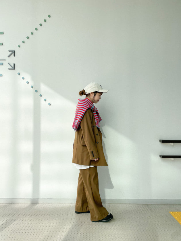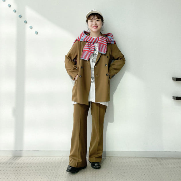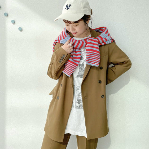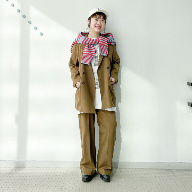 153cmで着てみましたが着丈がそこまで長くないのでバランス良く着用できます。