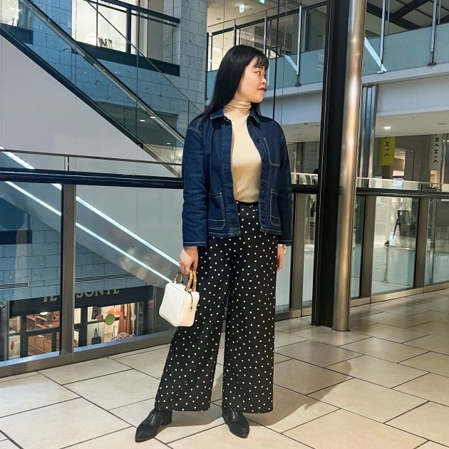 センタープレスがすっきり見せてくれるので、太めのシルエットですが、程よいリラックス感と上品さを叶えてくれます。