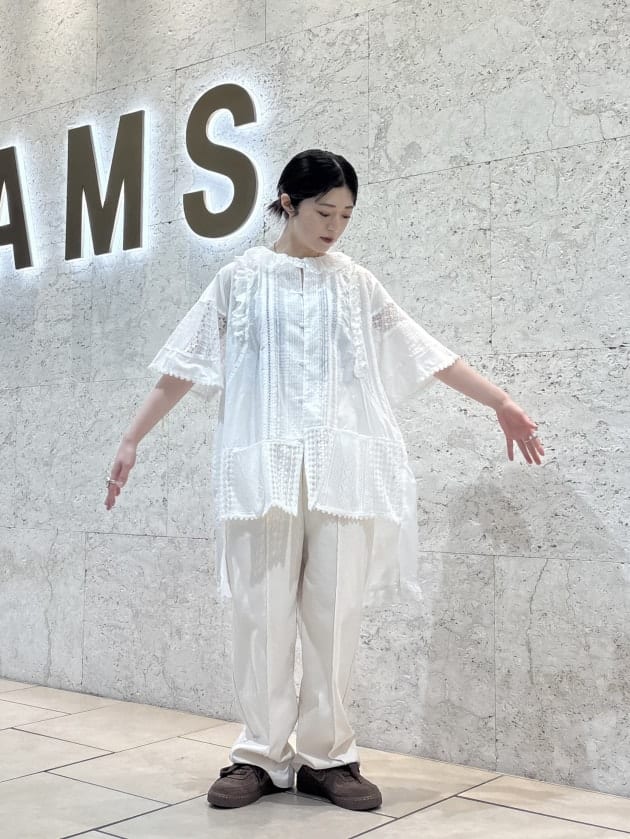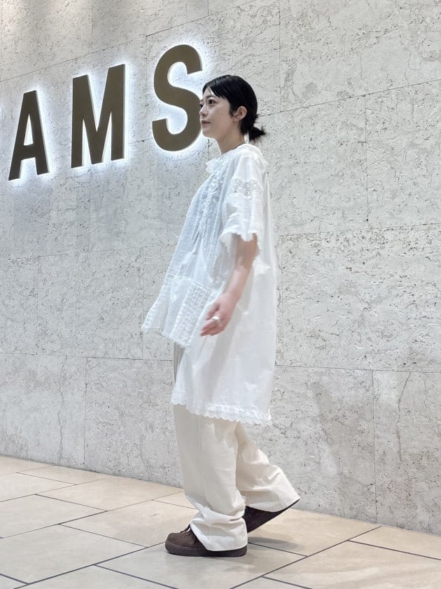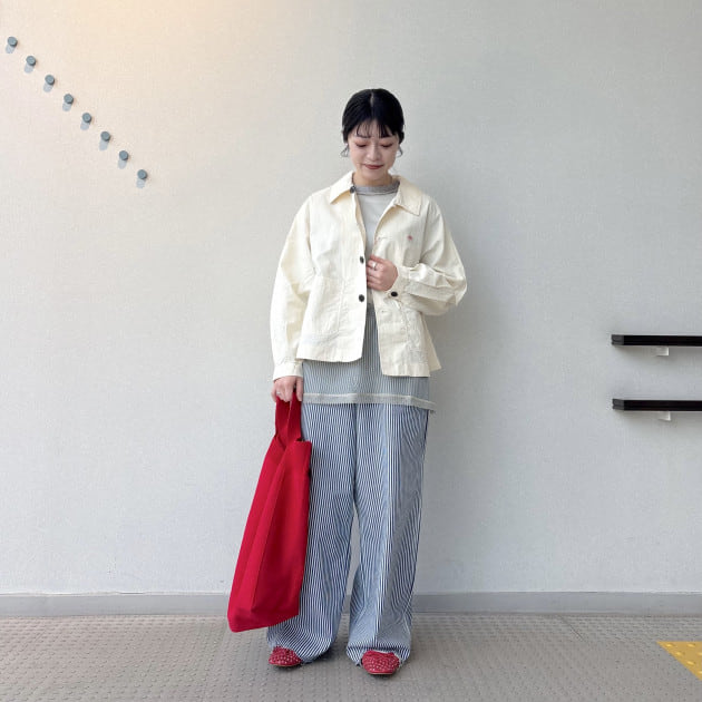 ワイドパンツと合わせて、メンズライクなスタイリング。