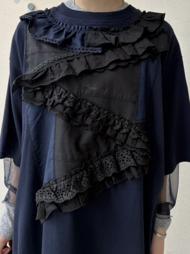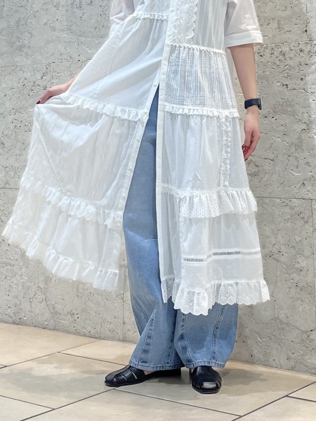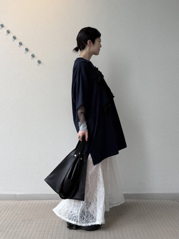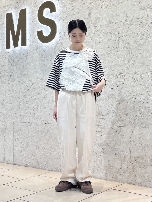 白のフリルスカートと合わせると、甘さとカジュアルさのバランスが絶妙に〜