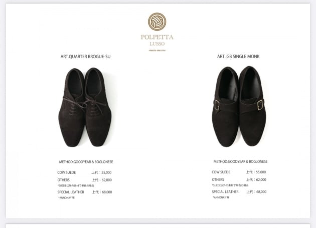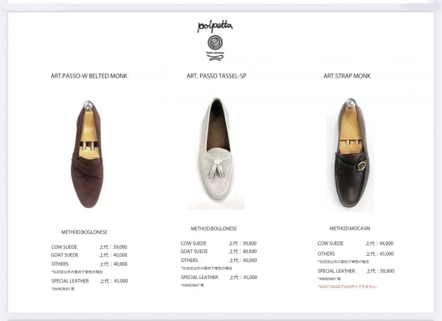 新シリーズ『LUSSO】のシングルモンクとクウォーターブローグの型もオーダー出来ます。