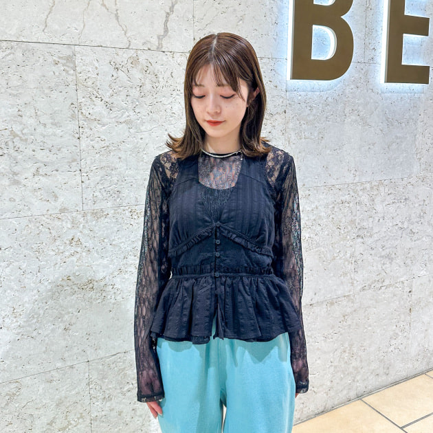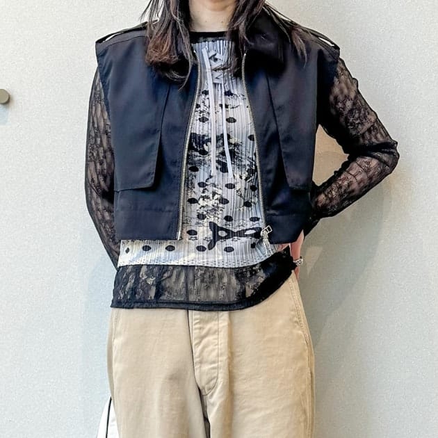 まだタンクトップ1枚では着られないので、レースのトップスをIN。私はさらにその上に、ブラックのベストをON。