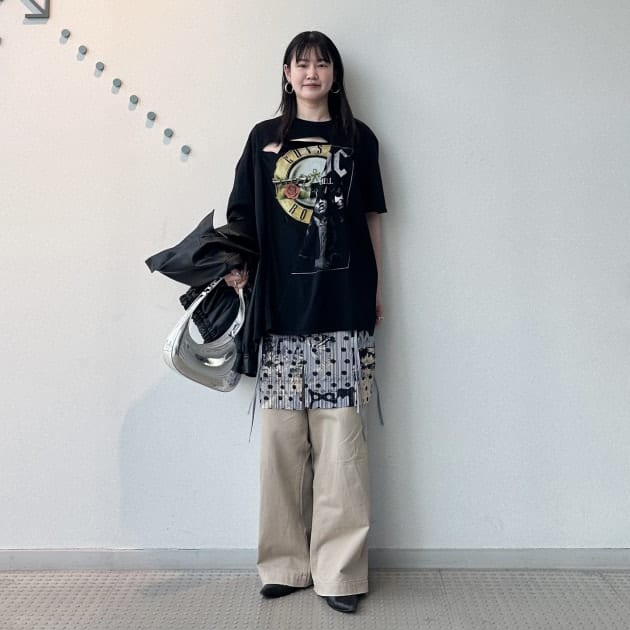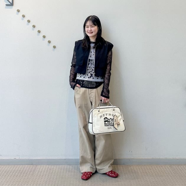 ワイドシルエットのチノパンと合わせて着用。
