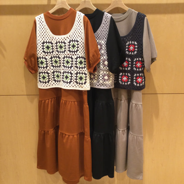品名:ジャカートニットベスト&ロングスリーブTシャツセット