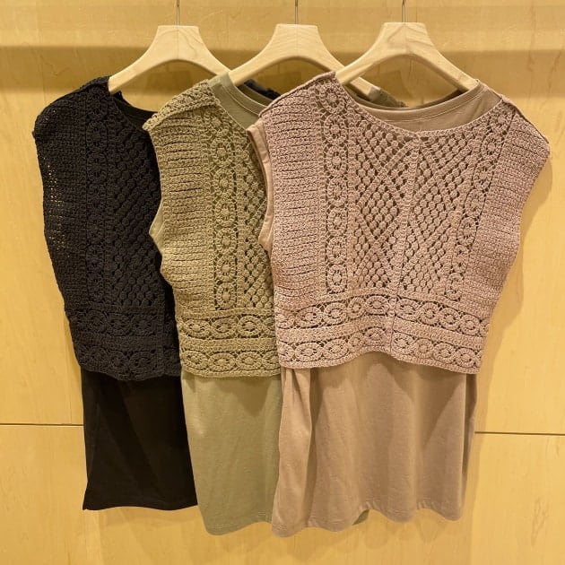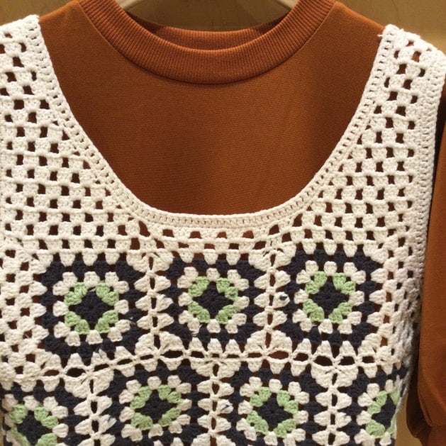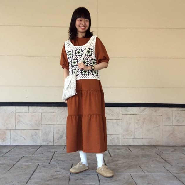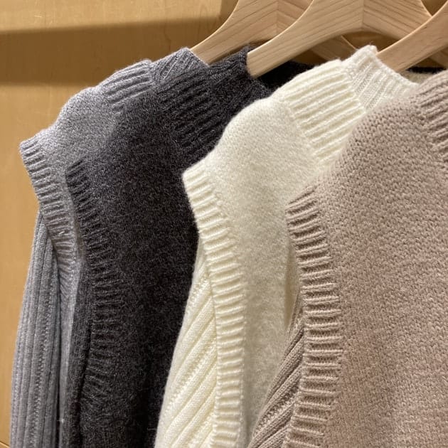 優しいアースカラーのベストはアクリルとコットンを使用しているので、少し早めに秋物を取り入れたいな〜!なんてときにオススメです◎