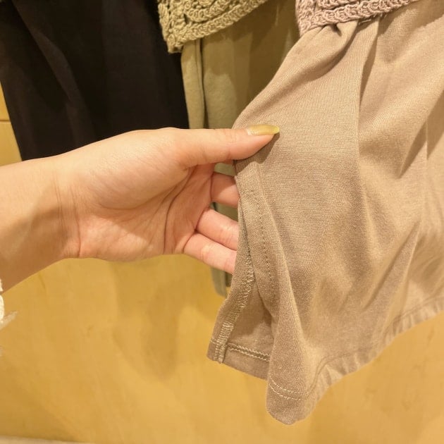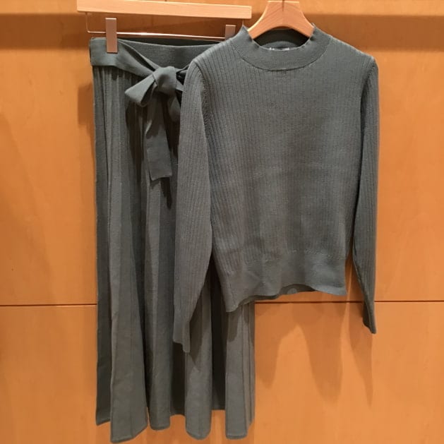 合わせているスカートの色違いがこちらのイエローグリーン!
