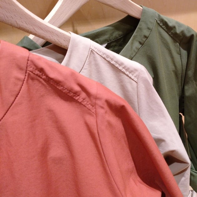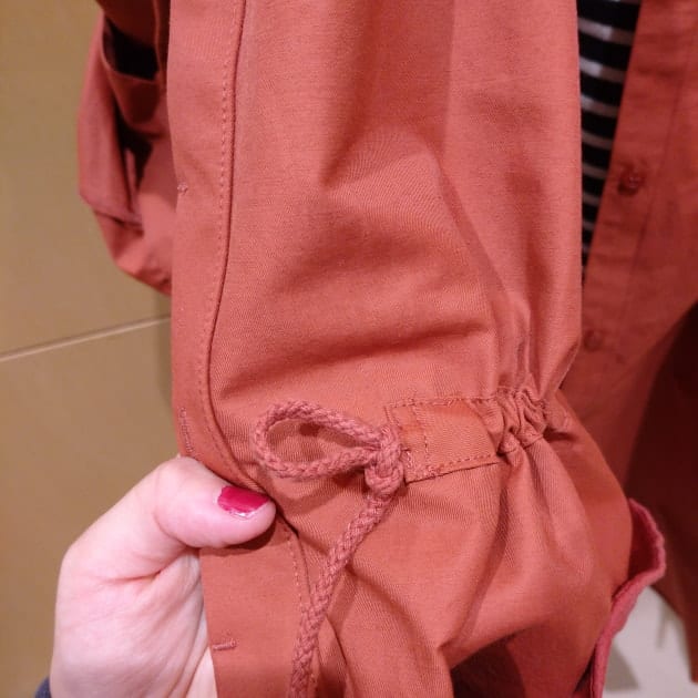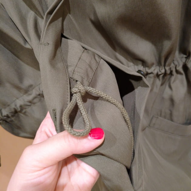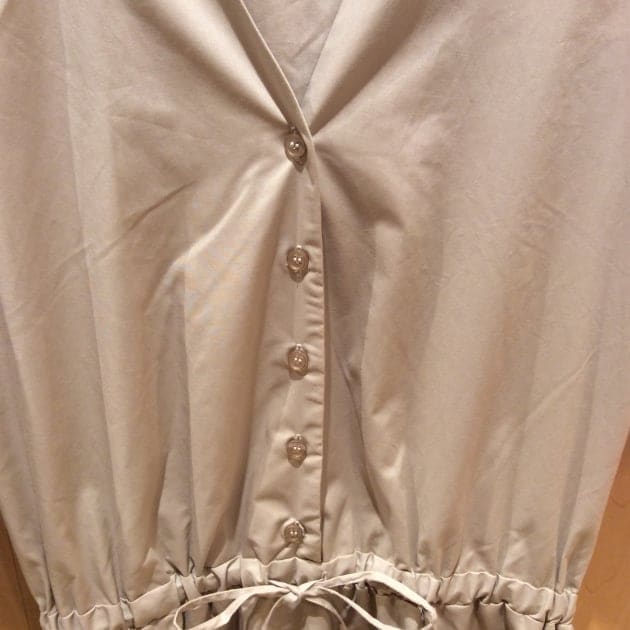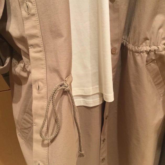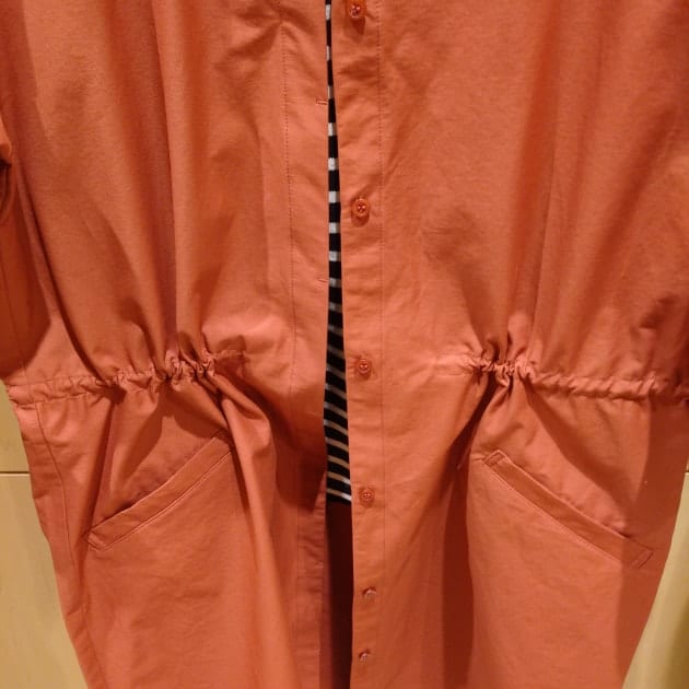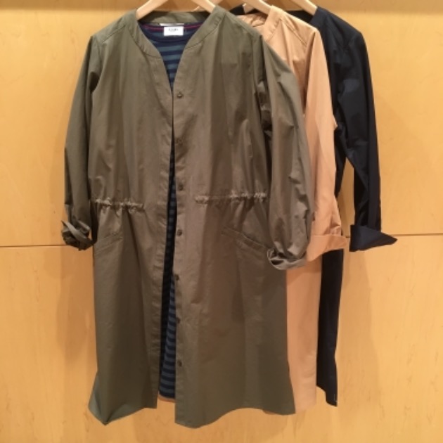 その名の通りノーカラーなので、すっきり!そして、ウエストはドローコードでお好みの絞り具合に♪