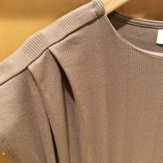 肩にはタックが入っていてシンプルになりがちなカット地のワンピースにデザイン性をプラス◎