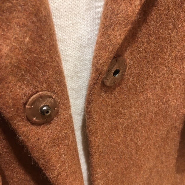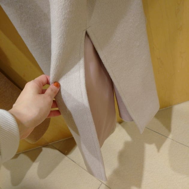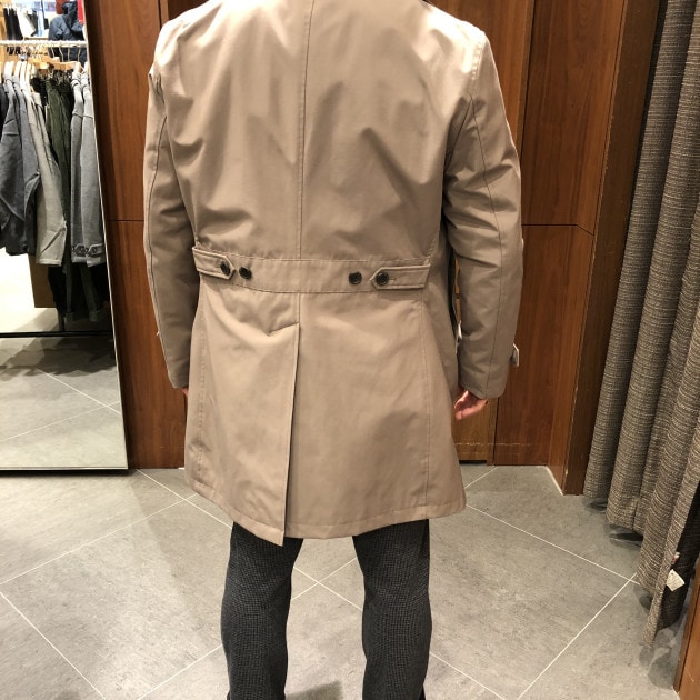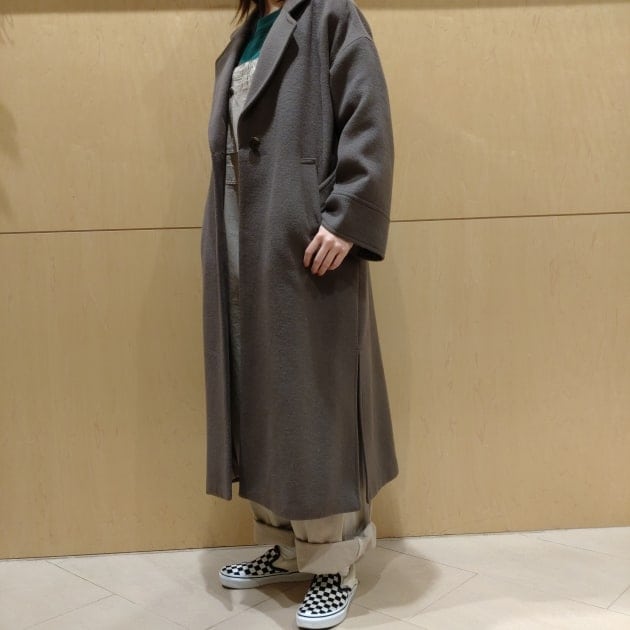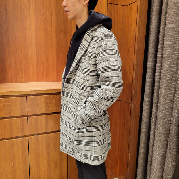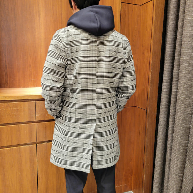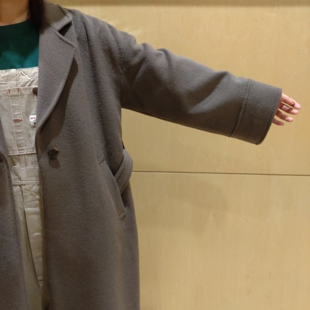 よく見かけるタイプのチェスターコートかと思いますが、このワイドな袖元↓