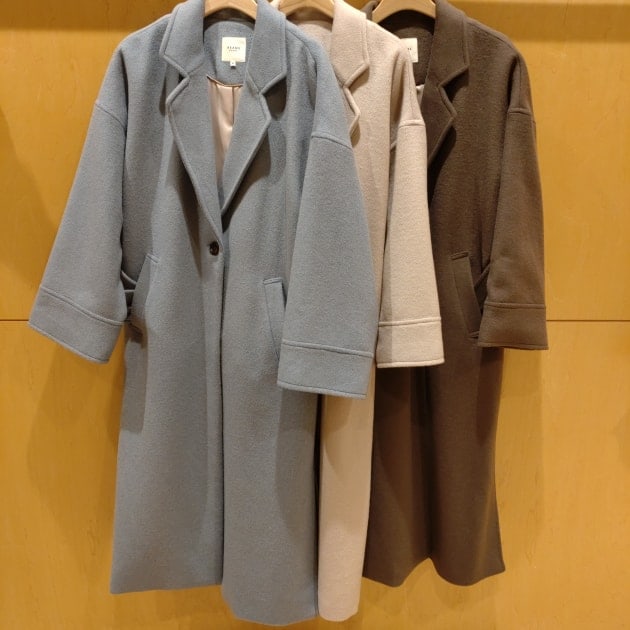 アイボリーとモカが人気ですが「定番カラーのアウターは、いくつか持っている」「いつも同じカラーだな…」という方にはサックスがオススメ!