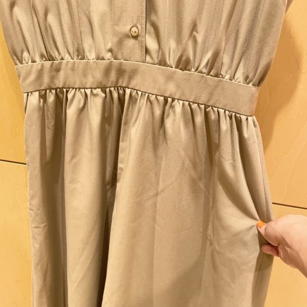デコルテをキレイに見せてくれるVネックと、さりげないフレアシルエットで女性らしく♡