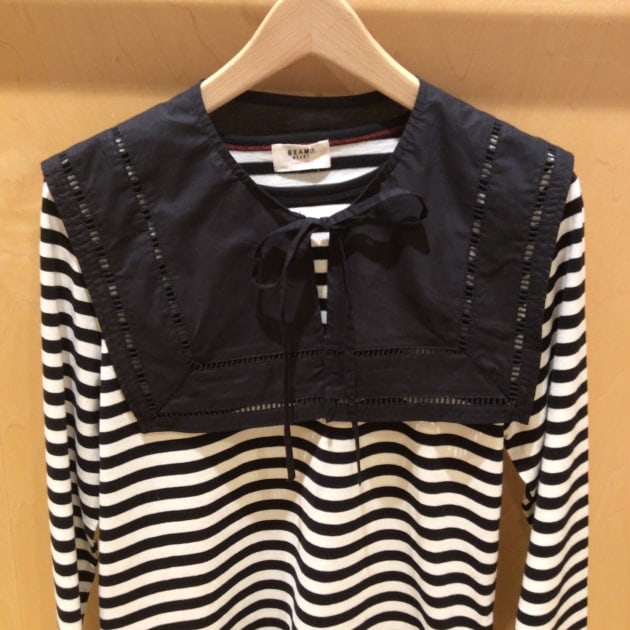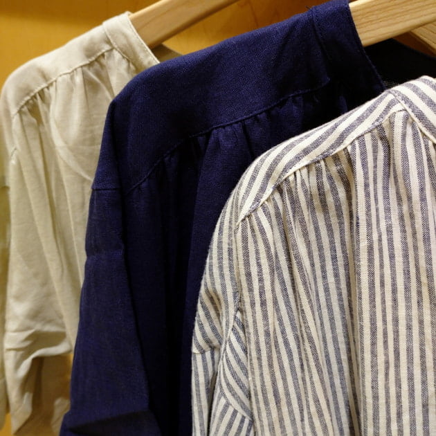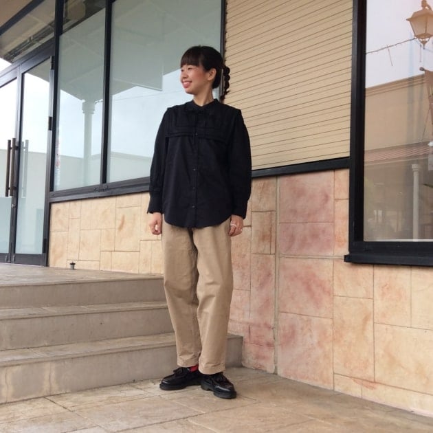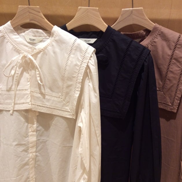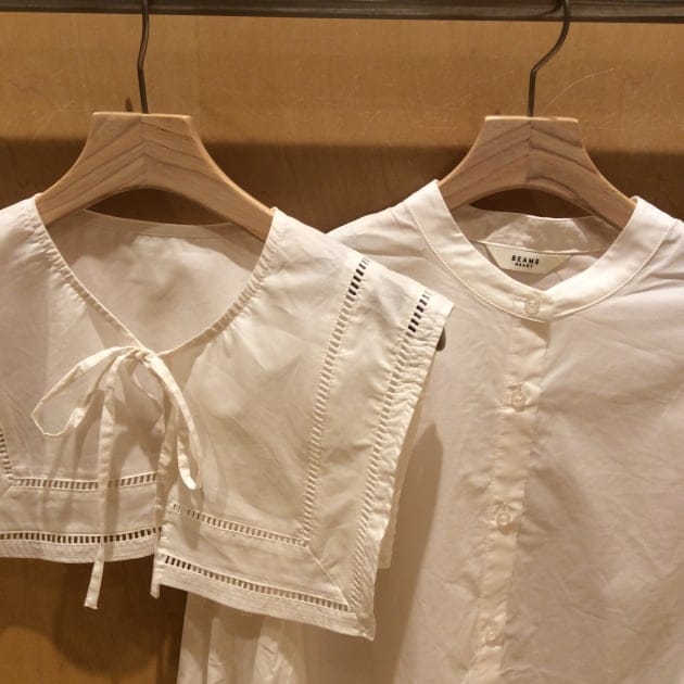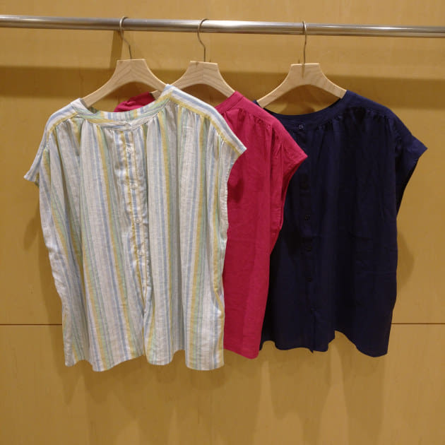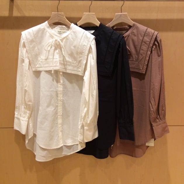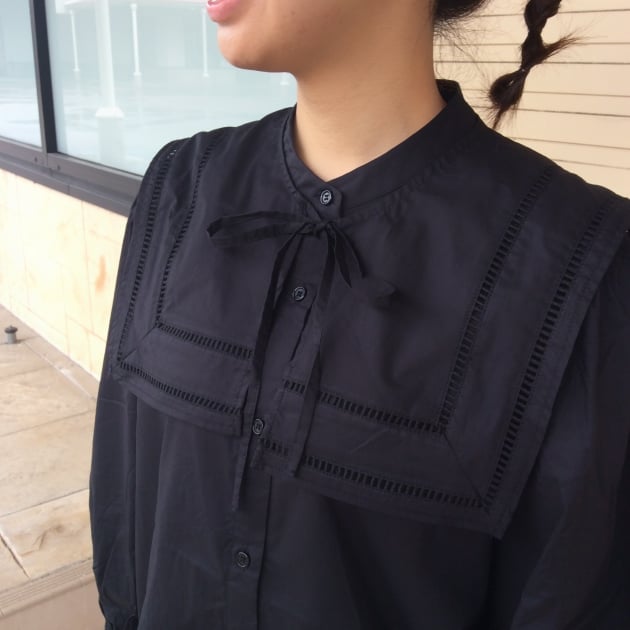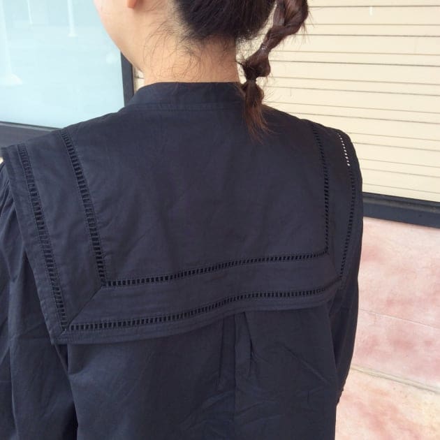 ボタンをうしろにするとノーカラーのブラウスに早変わり!