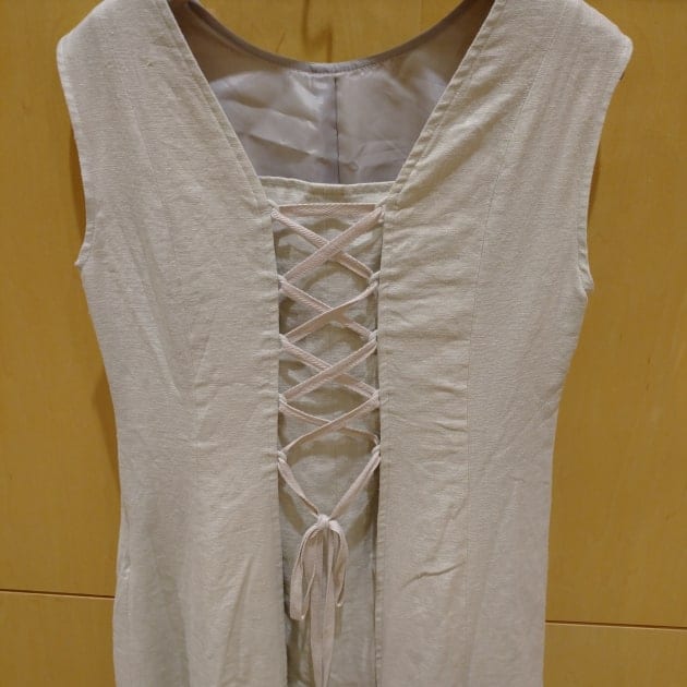 前から見るとシンプルなワンピースですが、後ろ姿も抜かりのない可愛いレースアップがキュンポイント♡