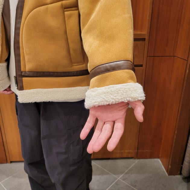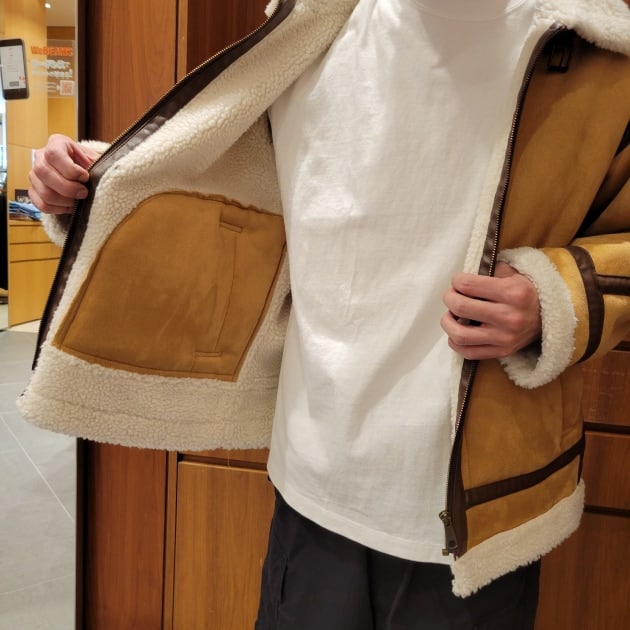 元々はヘビーゾーン(−10°~−30°でも着られる事)を前提に作られている為、表はシープスキンを使われていましたが、〈BEAMS HEART〉ではフェイクムートンを使っていますので、程良い暖かさと軽さがあります。