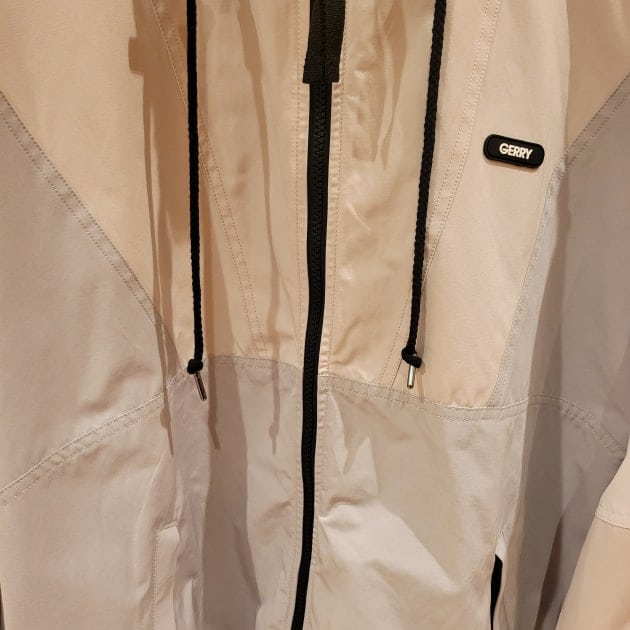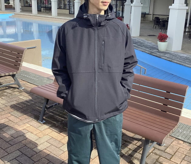 スタンドカラータイプのベストで表地はナイロン、裏地はポリエステルのメッシュ素材になっています。撥水加工が施されているので、雨の日にも活躍してくれます。