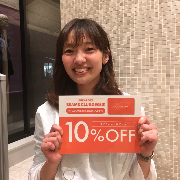 2017年3月27日(月)から4月2日(日)の期間、「ビームス アウトレット」各店にてBEAMS CLUB会員様限定の10%OFFキャンペーンを行います。税別10,000円以上のお買上げで、レジにて10%OFF!当日のご入会も承ります。