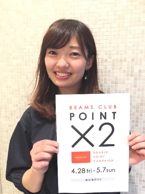 4月28日(金)から5月7日(日)BEAMS各店では、BEAMS CLUB会員の皆様へ感謝の気持ちを込めたダブルポイントキャンペーンを開催します。期間中は、通常の2倍のポイントを差し上げます。