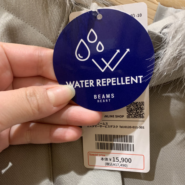 こちらのダウン、撥水加工が施されております!外を歩く時間が長い日や通勤時に急な雨が降った際はとても心強い機能だと思います!