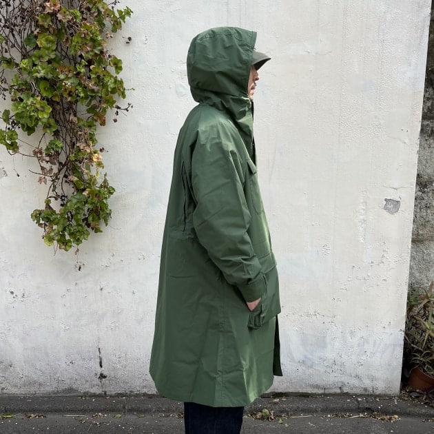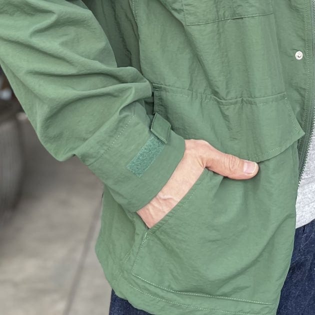 フードの着脱、着丈の調整、パッカブル、アウター使い、インナーごなしと1着で様々なギミックが隠れているこちらのジャケット。