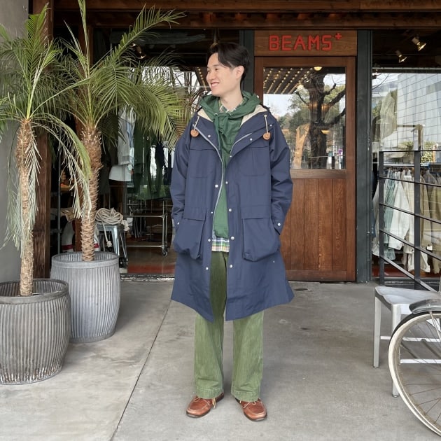 <BEAMS PLUS>ではナイロンを使用しております。2023年に販売していたモノは60/40クロスに寄せたタッチ感のナイロン。今回登場しているモデルはよりシャリ感のあるスポーティーなタッチ感です。春に着用しやすい様に裏地はついておりません。今年のモデルもパッカブル仕様ですが、シワなど気にせずにご利用いただけます。