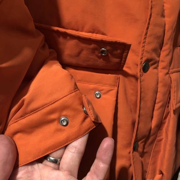 70年代に<SIERRA DESIGNS>が発売したタウンユース向けのジャケット。オリジナルのボディーはもちろん60/40(ロクヨン)クロス、このブランドの定番ファブリックでした。(襟はコーデュロイだったような…。)当時ではゴアテックスなどはもちろん存在しないので、コットン×化繊の撥水性を加味した生地選定は当時様々な人が着用しておりました。実は他のブランドでも同じ様なディテールのジャケットが出ていたりもします。
